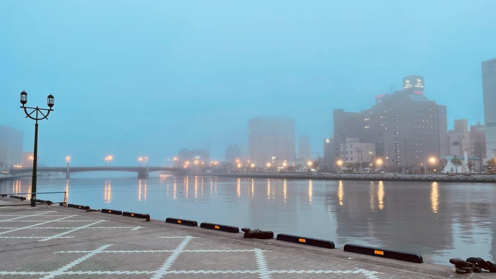 「霧の街」といえば北海道釧路市。 太平洋に面した海の街で、夏は避暑地としても有名です。6 月から8月の夏の3ヶ月間、 霧の出現頻度は二日に一回。 街全体を覆うほどの濃い霧はまるで天然のスクリーン。淡く灯る街の光が、ロマンチックに景色を投影します。