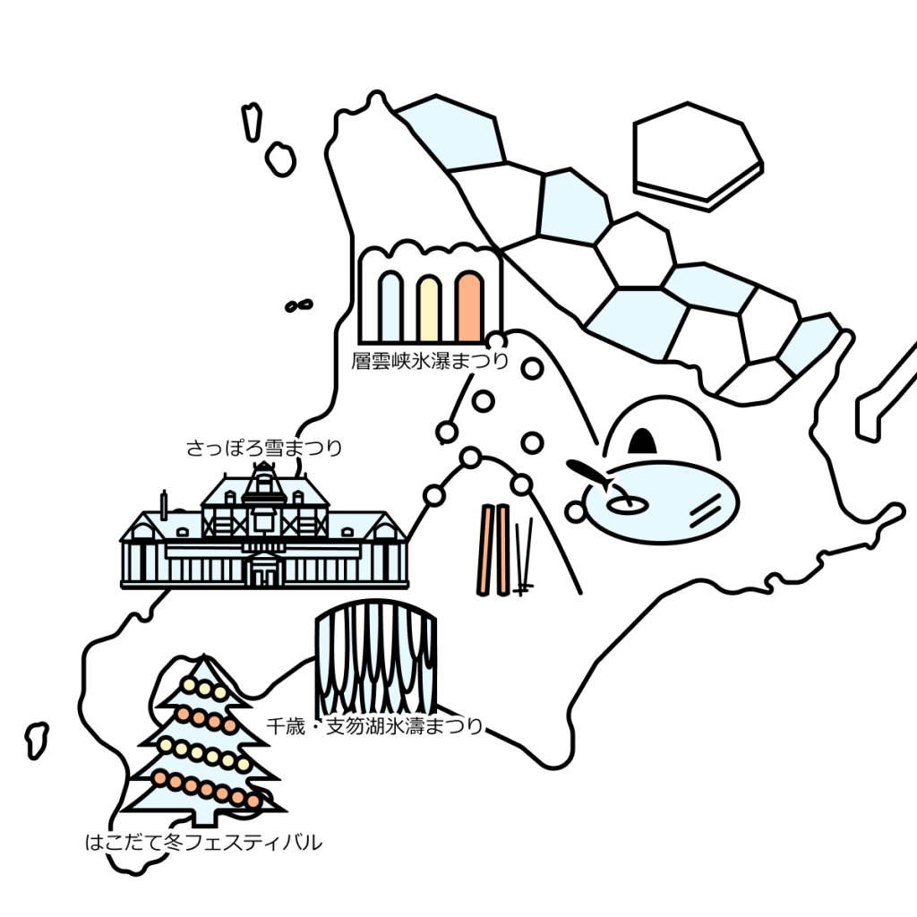 靴は滑り止め付き、防水性もあると良し。傘は必要なし、北海道の雪は濡れません。フード付きのアウターだと吹雪もへっちゃら、かも。外のアクティビティーは、保温性に優れたインナーに、重ね着で防寒を。都市部の観光は、インナーよりアウターやマフラーなどを重点的に強化。室内は暖房が十分に効いているので、意外と薄着で過ごせちゃう、かも。