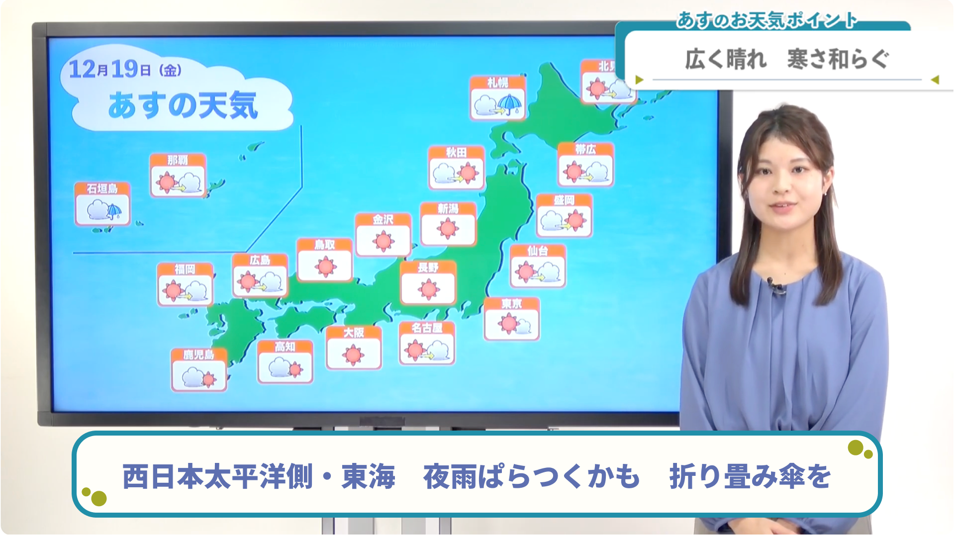 クリスマスは傘の手放せない一日に 夜は一気に気温が低下 防寒を万全に