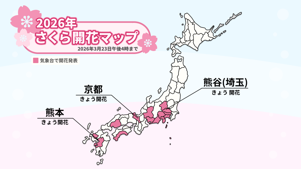 この陽気の中、きょうは熊本・京都・熊谷(埼玉)でソメイヨシノ開花の発表がありました。