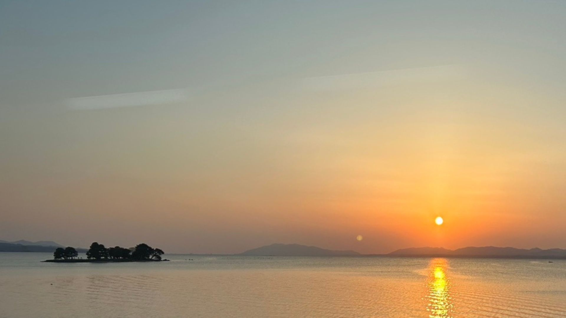 みなさんのお目当ては、宍道湖に沈む夕日です。