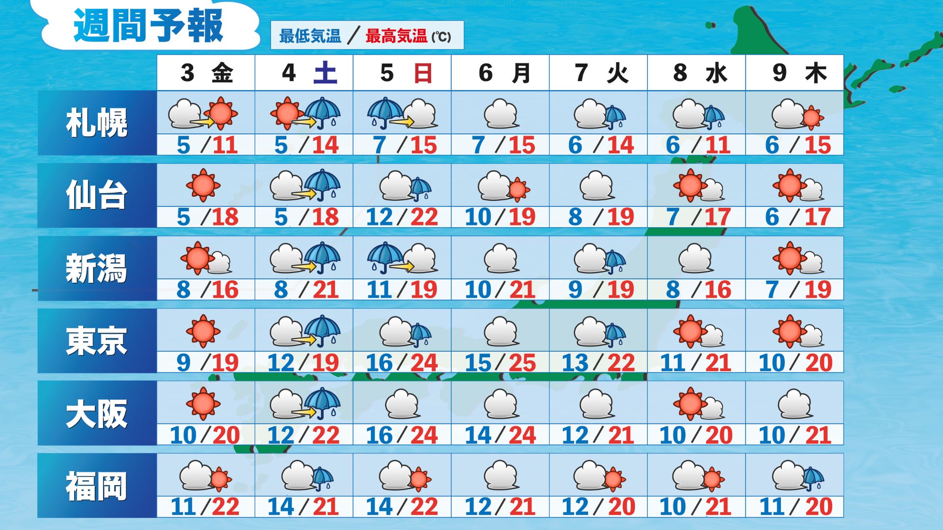 ただ、あさっては(4日)は、低気圧や前線の影響で、早くも全国的に天気が崩れそうです。