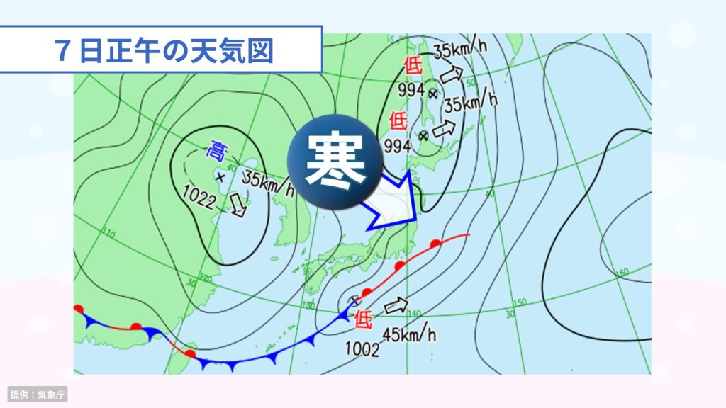 きょう(7日)は低気圧や前線の影響で、全国的に雨のところが多く、気温は日本海側から急激に下がっています。